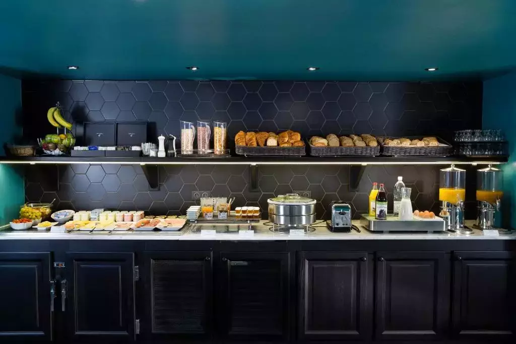 Un petit-déjeuner buffet composé de boissons chaudes, de viennoiseries et de fromage est servi chaque matin dans la salle à manger.